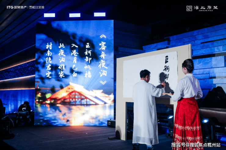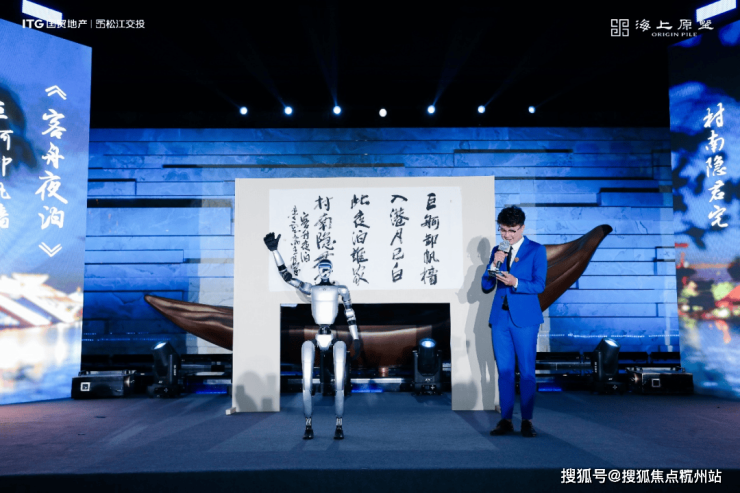 示范区开放现场,最有趣的场景当属松江书法家与AI机器人联袂创作《客舟夜泊》。宣纸上的墨韵与AI机器人的创意,开启文化与科技的创新对话,这也印证了海上原墅将这种“科技人文”思维注入了居住场景。