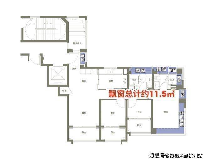 全屋应飘尽飘,主卧配备270°超大转角飘窗+主卫多角度飘窗,飘窗赠送约11.5㎡。