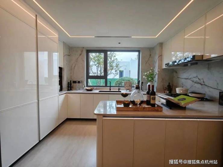 超一线装标,全部给足: 厨房间博世双开门冰箱、凉霸、嘉格纳四件套、弗兰卡水槽。柜体采用的是和19.5万的绿城同款柜体——威乃达,还有弗兰卡的大单槽、旭格的门窗。卫浴采用唯宝、高仪等品牌.......投入成本非常高。