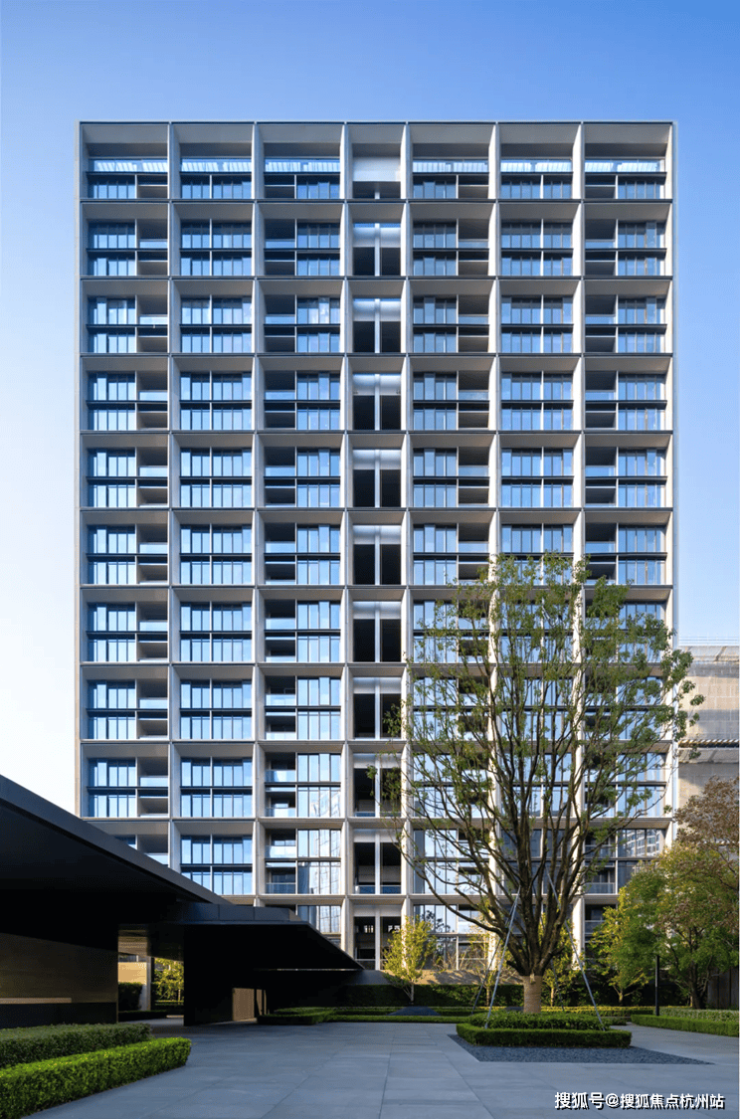 外立面采用 开放式铝板设计 ,平整度、精度远超常规铝板; 超大尺度落地窗设计 ,通透气派,美轮美奂。