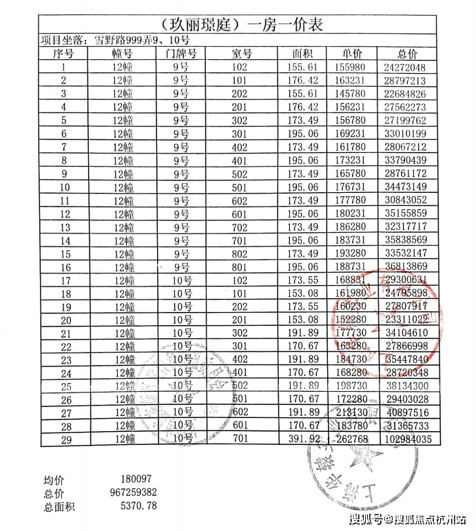 一房一价表