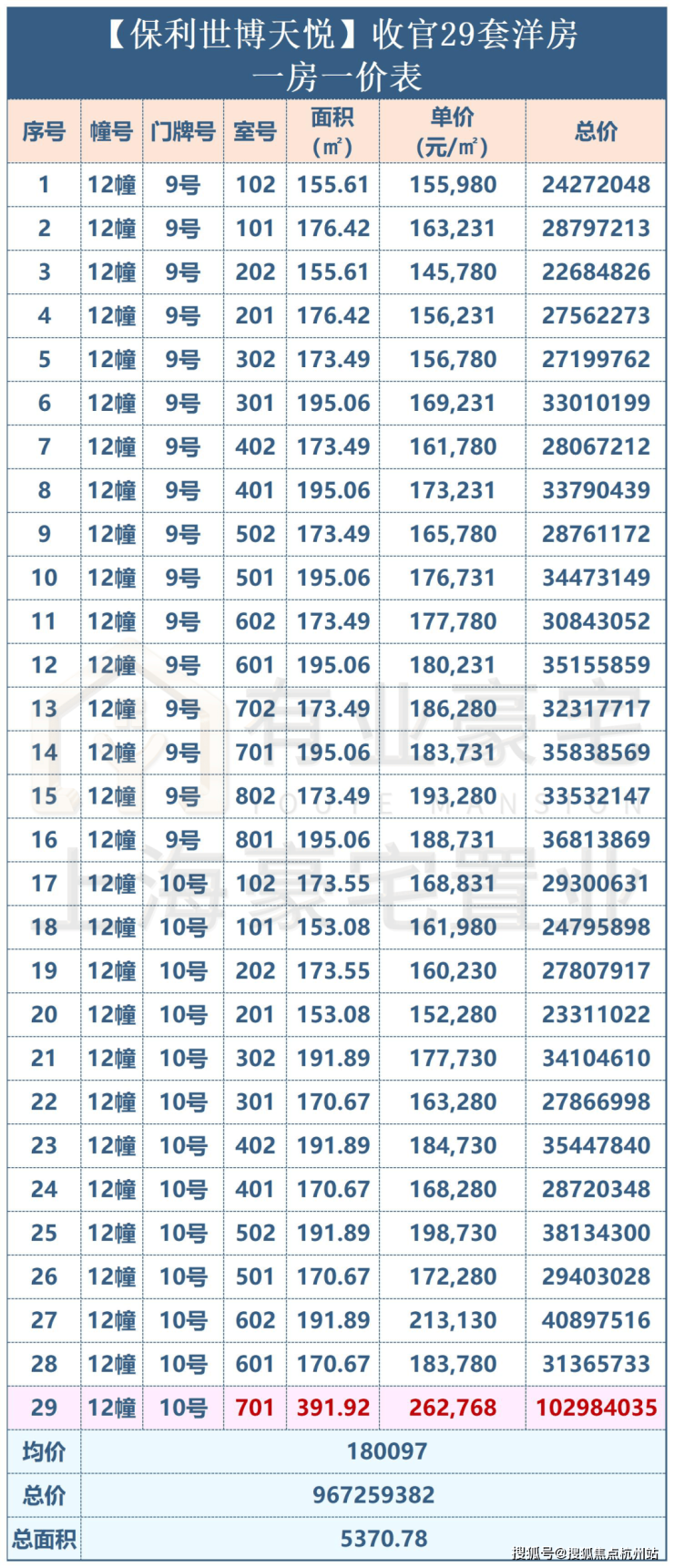 ⑦第七批:6月14号开盘,76套,面积约219-251㎡,均价约18.22万