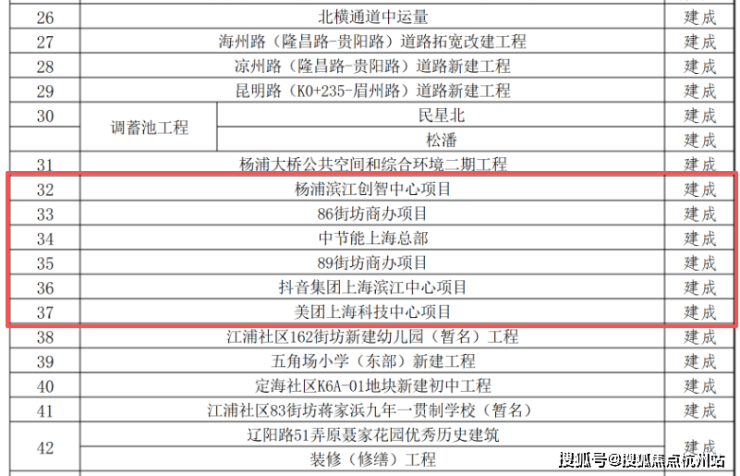 这份来自杨浦区官方公示的项目清单,清晰标注了从“新开工”“在建”到“建成”的全周期进度。其中,抖音、美团、B站、滨江创智中心的全面建成,将杨浦滨江的发展确定性,从蓝图实实在在落地为实景。
