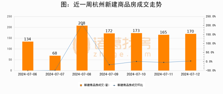 【杭州成交日报】07月12日新房成交170套、二手房220套;涨价房源36套