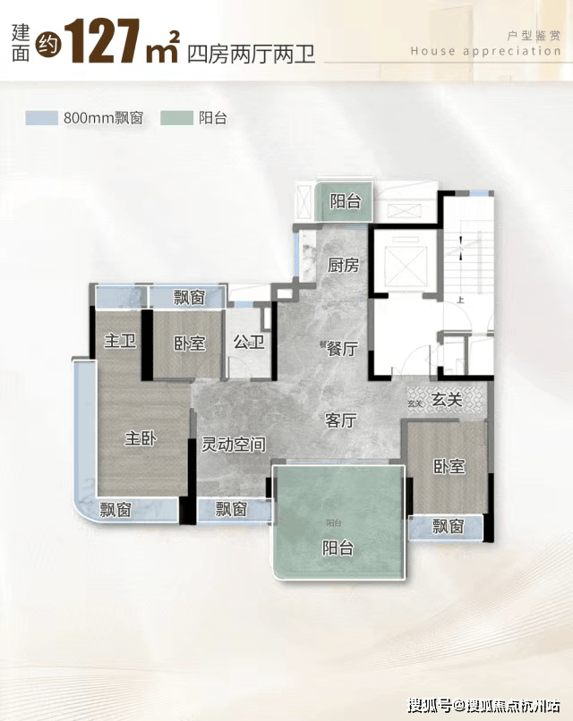 尤为亮眼的是其“全景舱”设计理念。全系户型采用南北对流双阳台,客厅、主卧大面积采用弧形转角玻璃幕墙,减少实体墙阻隔,最大化引入自然光线与景观视野。以建面约127㎡四房为例,南向采光面达约13.8米,LDKB一体化阔厅可灵活改造为约7.3米超级方厅;主卧配备270°全景舱、独立卫浴与衣帽间,私密性与尊崇感兼备。