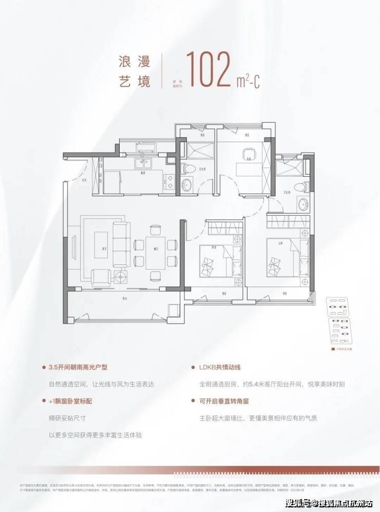 特色二:约5.5米双开间大阳台加大空间尺寸感,项目安排上了全屋飘窗,而且设计了双开间Plus大阳台。在大部分百平三房还只有约3.5米长的阳台时,这个项目把阳台拉长到了约5.5米,在视野上更开阔。正对次卧的阳台等于一个小收纳空间,洗衣机、烘干机,花架都可以放在阳台上。同时很多家庭面临的阳台杂物影响美观的痛点也可以迎刃而解,把衣服晾晒在次卧阳台一侧,客厅看上去就更加整洁了,采光也不会受到影响。