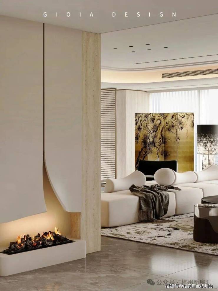 将艺术感进一步融入日常中。特别设计的专属门厅空间,是从电梯厅延伸到家,如同一处艺廊,放慢人的情绪;室内选用了浅金色奢石(外界也称其为“芬迪白大理石”)作为主要的石材,曲面的木饰面也为浅色,整体给人以明亮感。