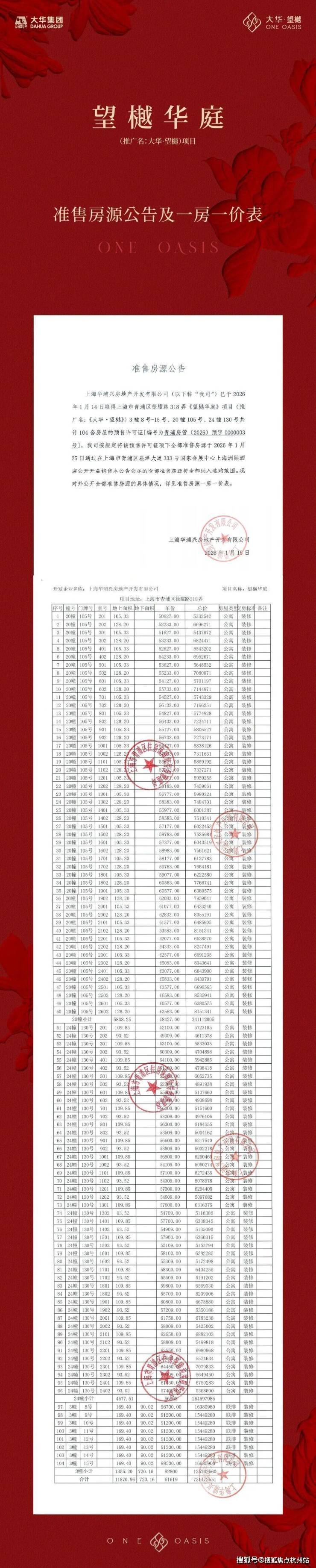 为保障购房者权益,规避非官方渠道误导,现将大华望樾2026年3月30日最新官方信息公示如下,敬请认准: