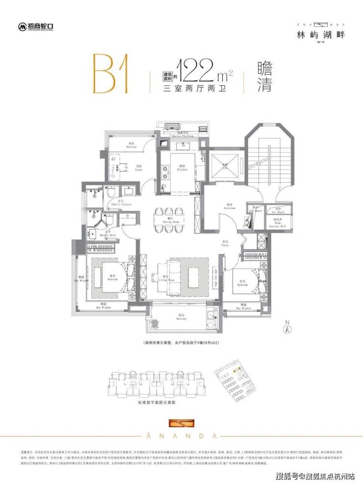 该户型分布在6号楼、9号楼、11号楼以及13号楼,其中9号楼位置最佳,南向楼间距约46米,下沉式庭院景观一览无余,下楼即达会所空间!