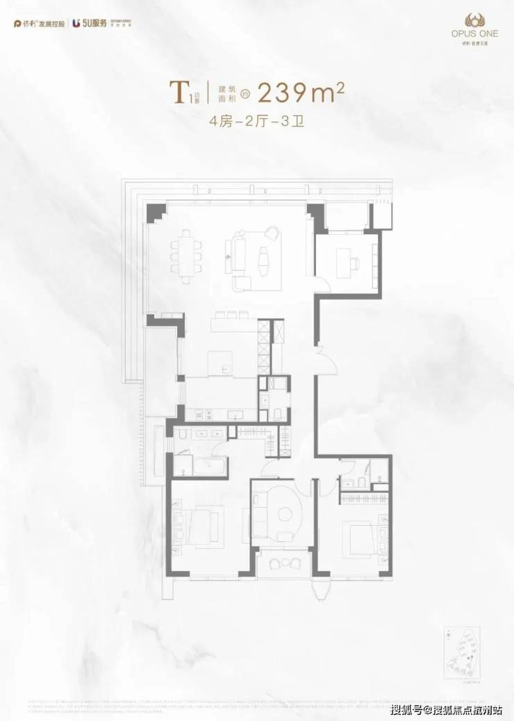 石英石台面、嘉格纳(或同档次)灶具、吸油烟机、洗碗机、冰箱、蒸汽烤箱的厨房六件套;239-251㎡户型并配有酒柜。