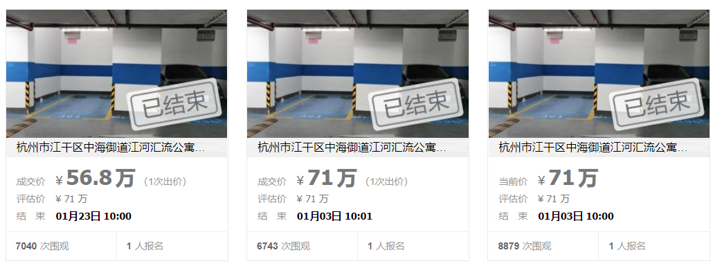 中海御道的车位,在今年1月份也拍出了71万的高价。而今天拍卖的3套房产,也都是带车位拍卖,最终高价成交,比评估价高出600多万。