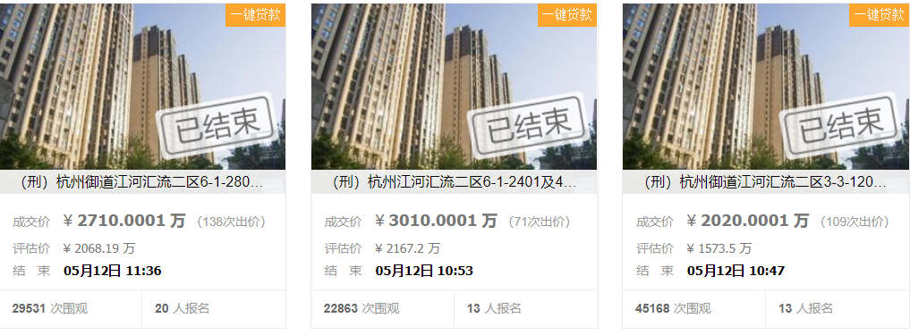 上午,上城区中海御道江河汇流公寓二区的3套房子,均以高价成交。