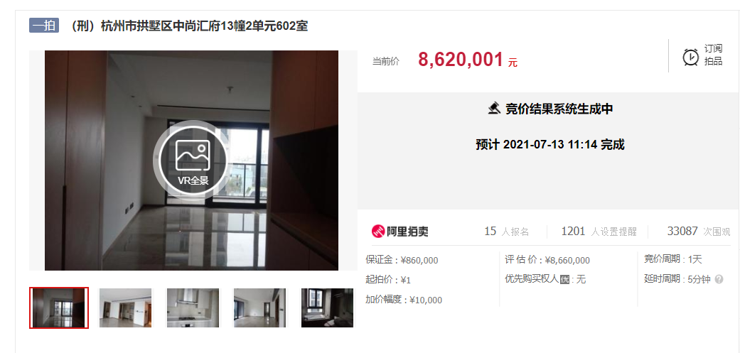 涨了251万!中城汇首套法拍房成交