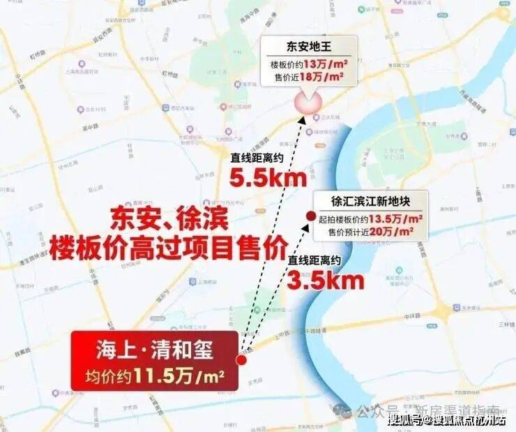 海上·清和玺与这两大超级地王直线距离仅3.5-5.5公里, 如此近的距离内,项目售价与地王楼板价、未来售价形成的巨大价差,放眼整个上海市区,都堪称“独一档”的红利窗口。