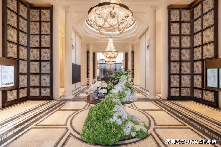 比如,预接待厅的 「威尼斯白+爵士白石材拼花」地面、 E9级进口水晶灯,以手工匠艺实景兑现: