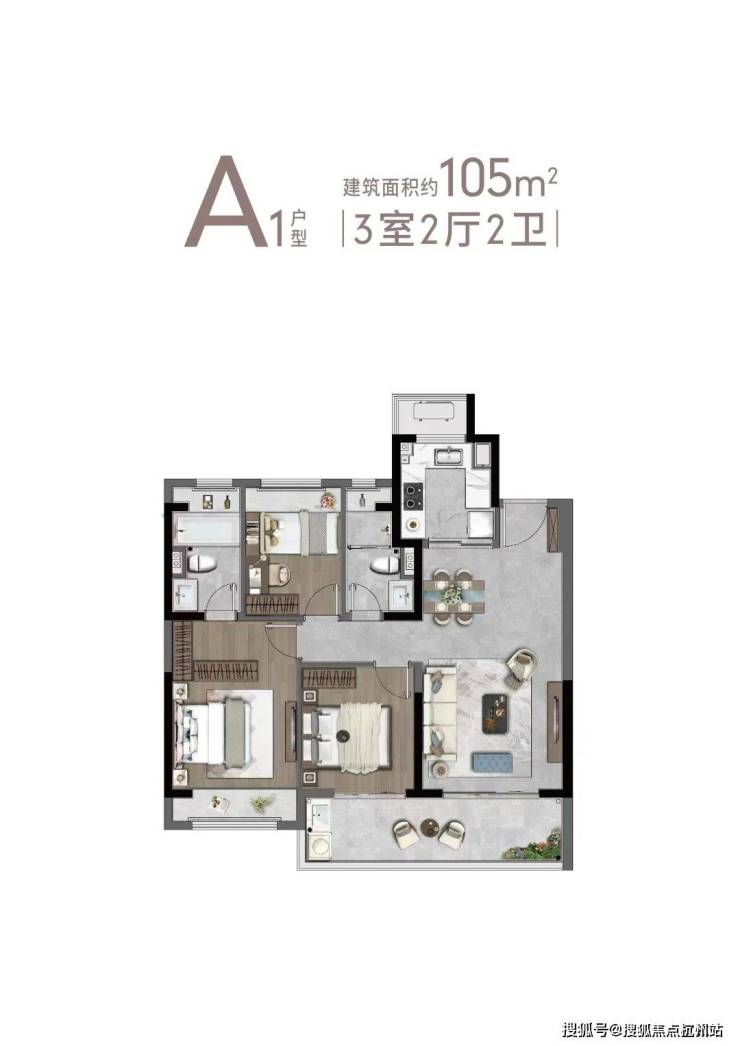 A1户型105㎡3-2-2