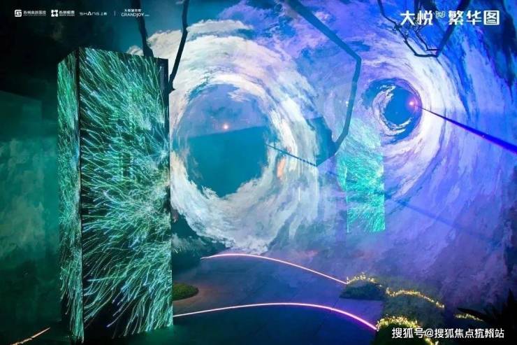 大悦繁华图更像当代都会生活图鉴的合集,如同一本风尚生活杂志,时尚、休闲、包容、开放,让客户遇见摩登封面,抵达人心的繁盛。主会场通道打造极光氛围感,让置身其中的观赏者与空间彼此融合又相互影响,艺术和科技的完美结合,让来宾们赞叹不已。