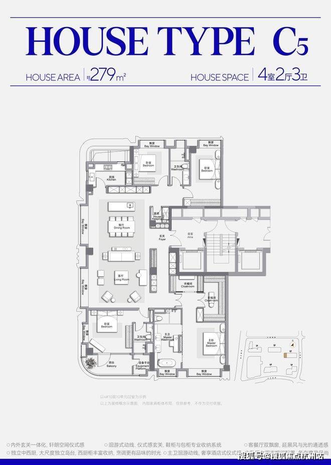 此外,客餐厅一体化、约270°弧形观景阳台配全卧飘窗皆为标配。