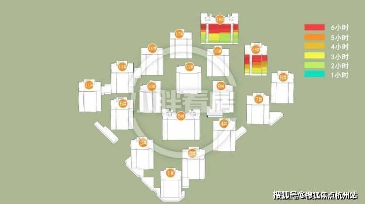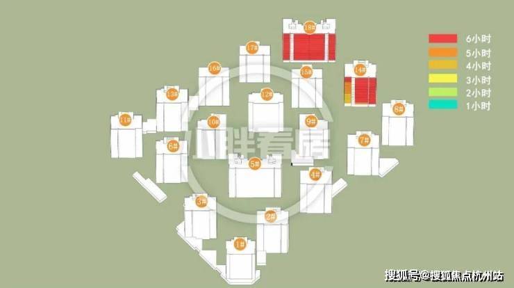 伟星·星宜嘉映府的分析结果是这样:计算已考虑周边所有建筑的影响,结果表明南部住宅冬季会对2#产生遮挡,其余楼栋仅受地块内部影响。(说明:本文日照数据基于公示规划图纸文件,使用专业制作工具完成,仅供参考)
