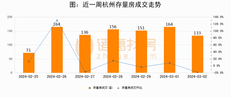 【杭州成交日报】03月02日新房成交100套、二手房133套;涨价房源81套