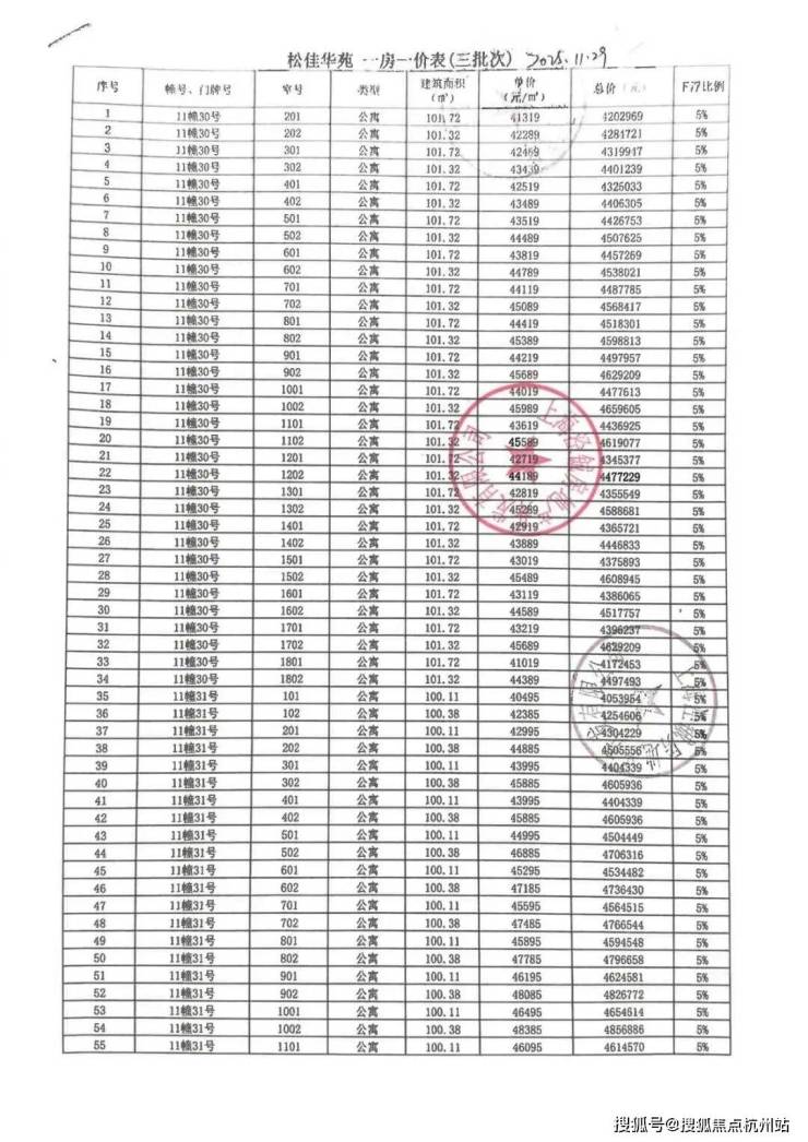 一房一价表如下: