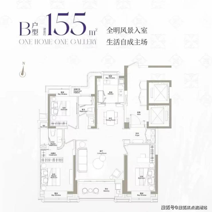 近全飘窗设计,扩展了生活的尺度感;主卧豪华套房设计,兼顾私密性与居住舒适度!