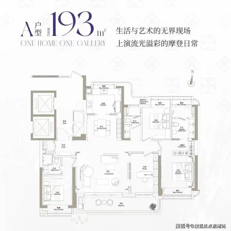 建面约193m²户型,主力总价3400万左右