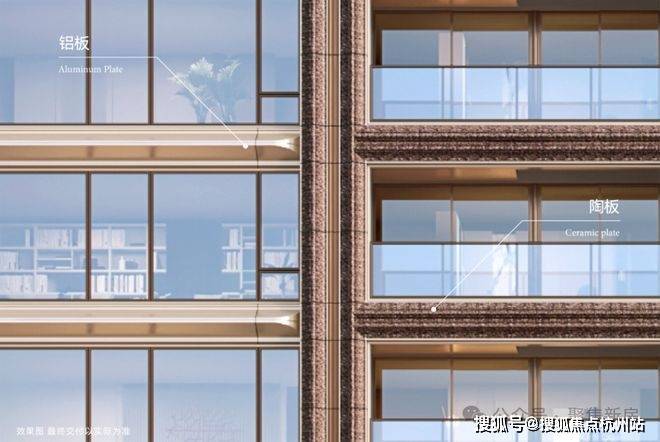 建筑四面均采用铝板+玻璃+定制陶艺,历经百次试烧锻造鎏金陶板,成就上海唯一国际东方艺术全景立面,每面皆城市封面,整体采用非对称的结构设计,回应上海东西方文化交融碰撞的城市美学。大胆采用四排楼布局,以保证户户通风采光,类一梯一户无连廊设计,将入户私密性做到极致。