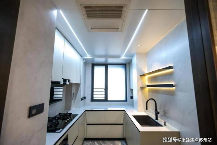 上海闵行安高申陇院售楼处电话☎:400-9659-259(预约看房热线)客厅和卧室无主灯设计,再叠加弧形吊顶,既打造了柔和、温馨的氛围,又能保证较好的视觉空间感.