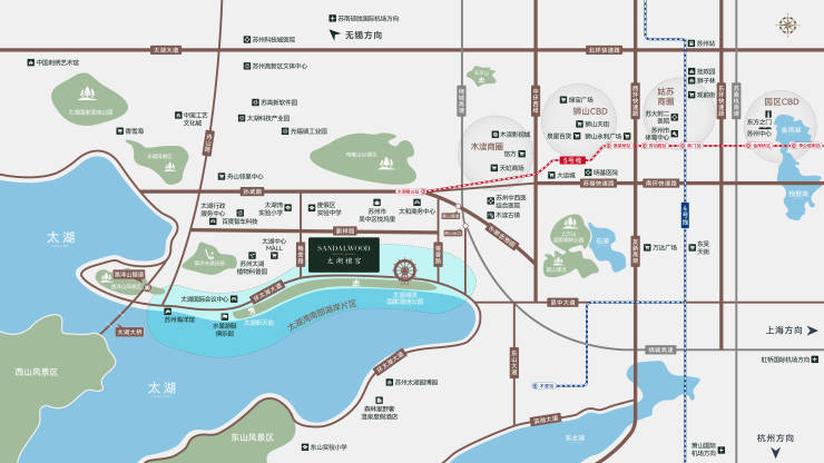 公共交通:项目距离地铁5号线(太湖香山站)1.5km,通达苏州全市,转11号线连通上海大都市.