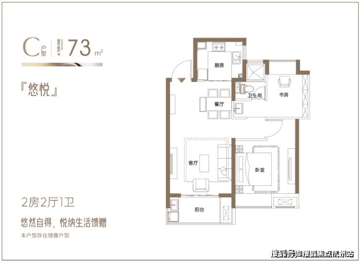 建面约73㎡小户型,双开间朝南+客餐厅一体化+2房功能性 ,非常适配过渡的年轻小家庭, 首付约55万起。