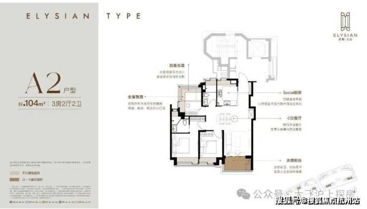 约104m²三房两厅两卫(A2户型)