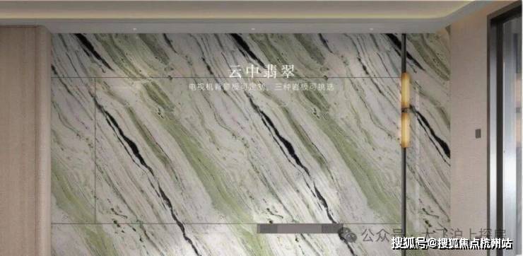 充分考虑业主的个性化需求,在电视背景板提供了新潘多拉、云中翡翠、弗朗明戈金三种结晶釉面岩板选择,成本更高,施工难度也更大。