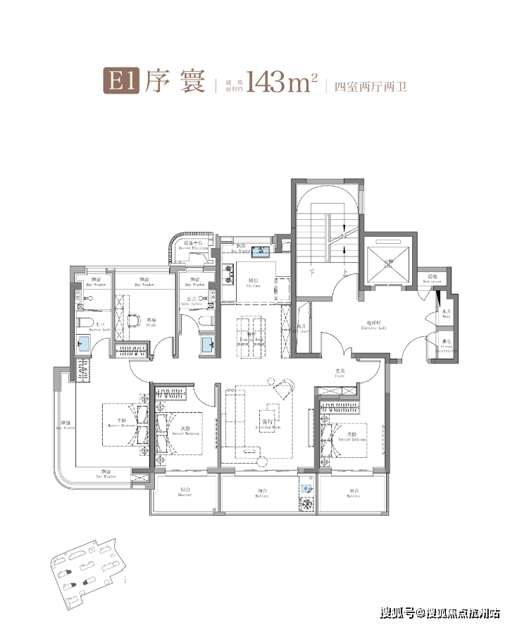 建面约143㎡4房是南北通透、四开间朝南的户型格局。子母门入户,独立玄关,大户人家气场全开!南向三阳台面宽约10米,加上主卧270°转角飘窗,带来了阔绰的南向采光面!