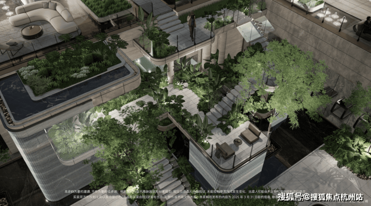 同时,搭载环幕级落地窗,户外,是垂直景墙、悬浮观景台与叠水景观立体穿插的园林景观,一边锻炼,一边欣赏窗外景色,让业主归家即享度假生活。