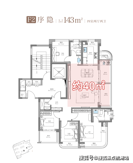 建面约143㎡还有一个侧厅户型,如果将客餐厅和双阳台打通之后,业主将获得一个约40㎡的起居空间!