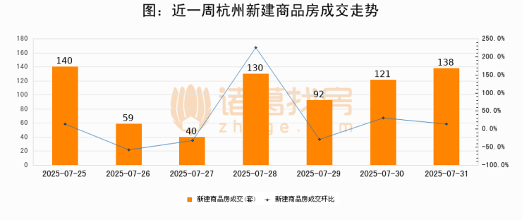 【杭州成交日报】07月31日新房成交138套、二手房180套;涨价房源17套