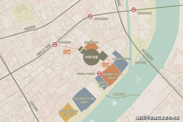 轨道交通方面:距离地铁12号线隆昌路站直线约500米,步行可达,这在杨浦滨江一众不靠轨交的项目中是非常难得的。进站后4站可达北外滩,7站陆家嘴,8站通达人广。