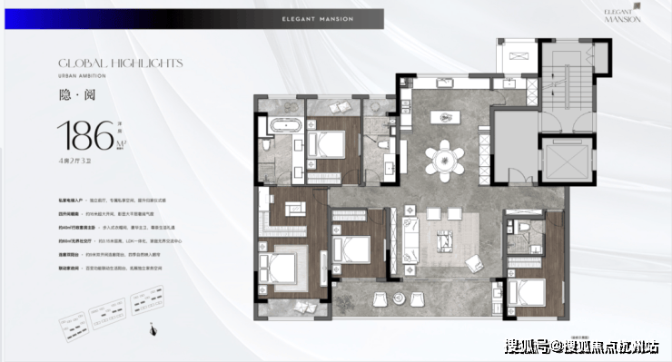 186㎡👇👇约55平LDK厅联动阳台,私家电梯入户,分享式中西双厨空间,独立岛台