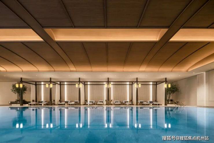 最让我心动的是这个无边泳池!招商序以 “室内外自然无界”的设计手法,将无边泳池与庭院美景在视觉上连成一体,当阳光映照跃动的蔚蓝,业主畅游的同时还能包揽庭园诗意;深色木架构撑起白色帏幔,池边躺椅的设计也极具豪华酒店的优雅与尊贵,穹顶则延续着海派穹顶的经典设计元素,以细腻的木纹铝板打造。 以往只在奢华度假酒店的体验在家楼下的会所也能拥有!