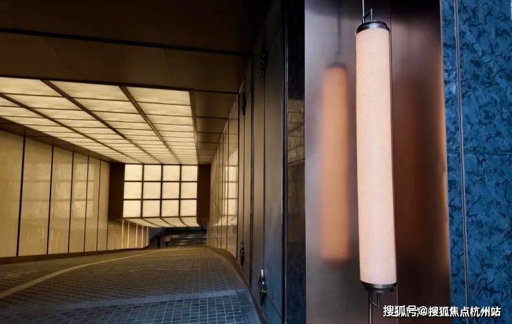 地库入口选用 范思哲黑奢石+大面金属板材 ,奢润气息扑面而来。 云石壁灯 洒下一圈柔和光晕,仿佛在轻声提示:喧嚣止步,归家从此刻真正开始。