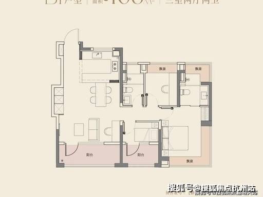 106㎡三房两厅两卫,是项目主推明星户型,总价 580 万起,三开间朝南,南向面宽约 10.2 米,客餐厅一体化连接阔景阳台,视野开阔。主卧套房设计,带独立卫浴、步入式衣帽间与飘窗,舒适度拉满;双南次卧 + 北向多功能房,灵动空间可做书房或儿童游乐区;全屋动静分区明确,厨卫全明,细节处彰显品质,适配三口之家或二胎刚改家庭。
