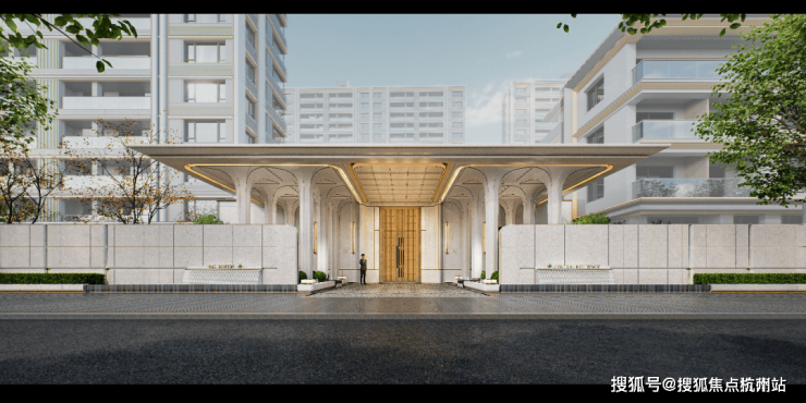 约24米宽的“疏影鎏光”主入口 ,与疏影路成排香樟共同构成社区门庭封面。