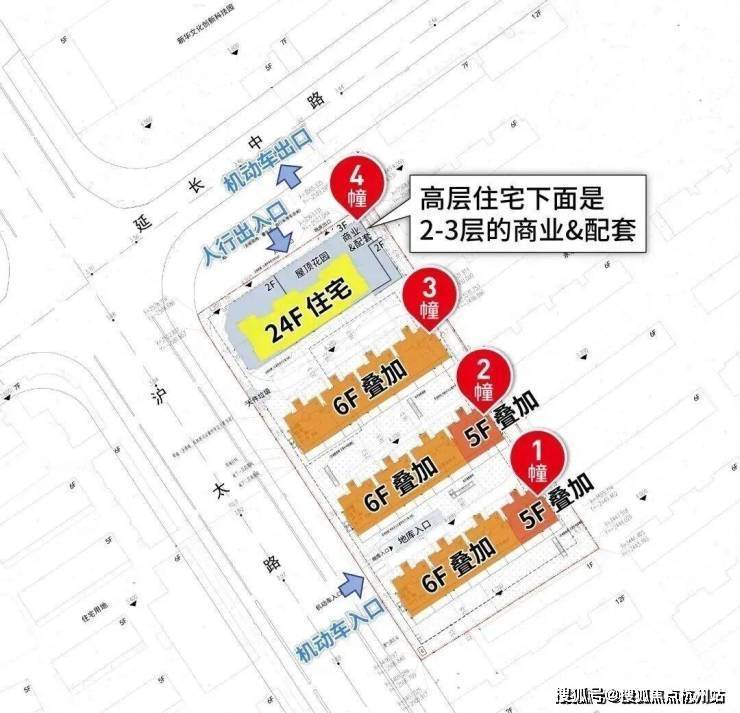 北侧高层住宅下面3层为商业,住宅窗外视线几乎无遮挡 ,各楼层都能拥有极佳的采光和视野。