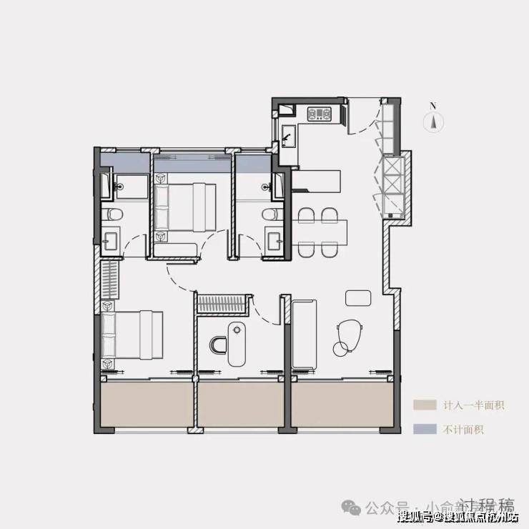 三梯五户 的配置,西边套约123㎡还独享 独立入户 !私密性、尊贵感、实用性全拉满,这户型简直是 六边形战士 !
