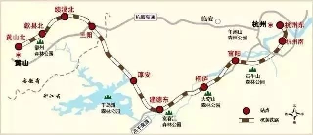 杭黄铁路建成后,杭州到黄山较快1.5小时,富阳、桐庐、建德、淳安等杭州郊区、县、市,更是分分钟就能到。