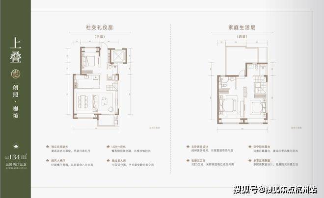 一层是会客区,大尺度横厅,可以打造客餐厅,采光条件优越,还配备了颐养房,方便家中老人居住。二层双南大套房+南向阔景飘窗+三卫的设计,空间层层递进,尊崇有序。大华·梧桐樾售楼处电话:400-998-9694(户型详解专线)