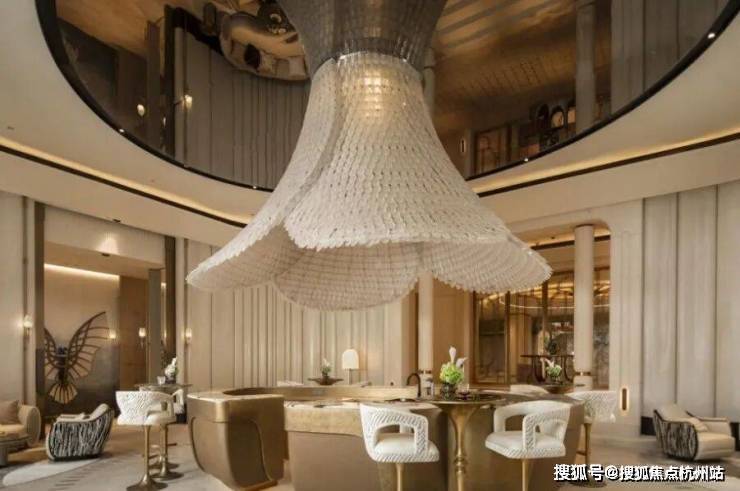会客厅 不仅承载了“私人空间之外的延伸场景”,还打造了标志性的“羽化万象”艺术吊饰,每一片玻璃羽毛造型都由经验颇丰的老师傅搭建而成,构建出光影婆娑的美学画卷。