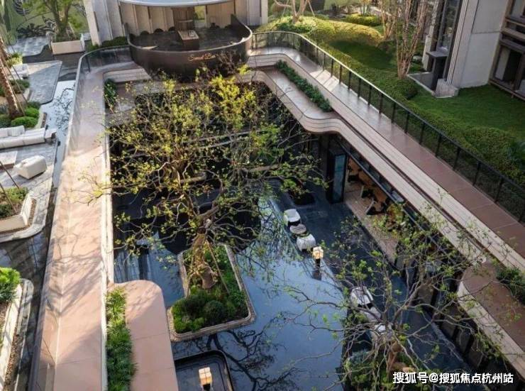 实景呈现的岛屿水院,作为保利天奕五座全球大师花园之一,在 银海枣树阵 、 下沉式庭院 、 镜面池畔卡座 的呼应中,成为未来居者沉浸自然的惬意之地。温柔闲适的 落日廊吧 ,犹如身处海岛之畔,感受蓝调时刻的优雅情调。
