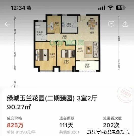 6.二手市场价格可期 ,旁边绿城二期今年成交一套90m²小户型,单价9.1万,比保利天奕前期小户型最贵单价还贵出近1万/m²!